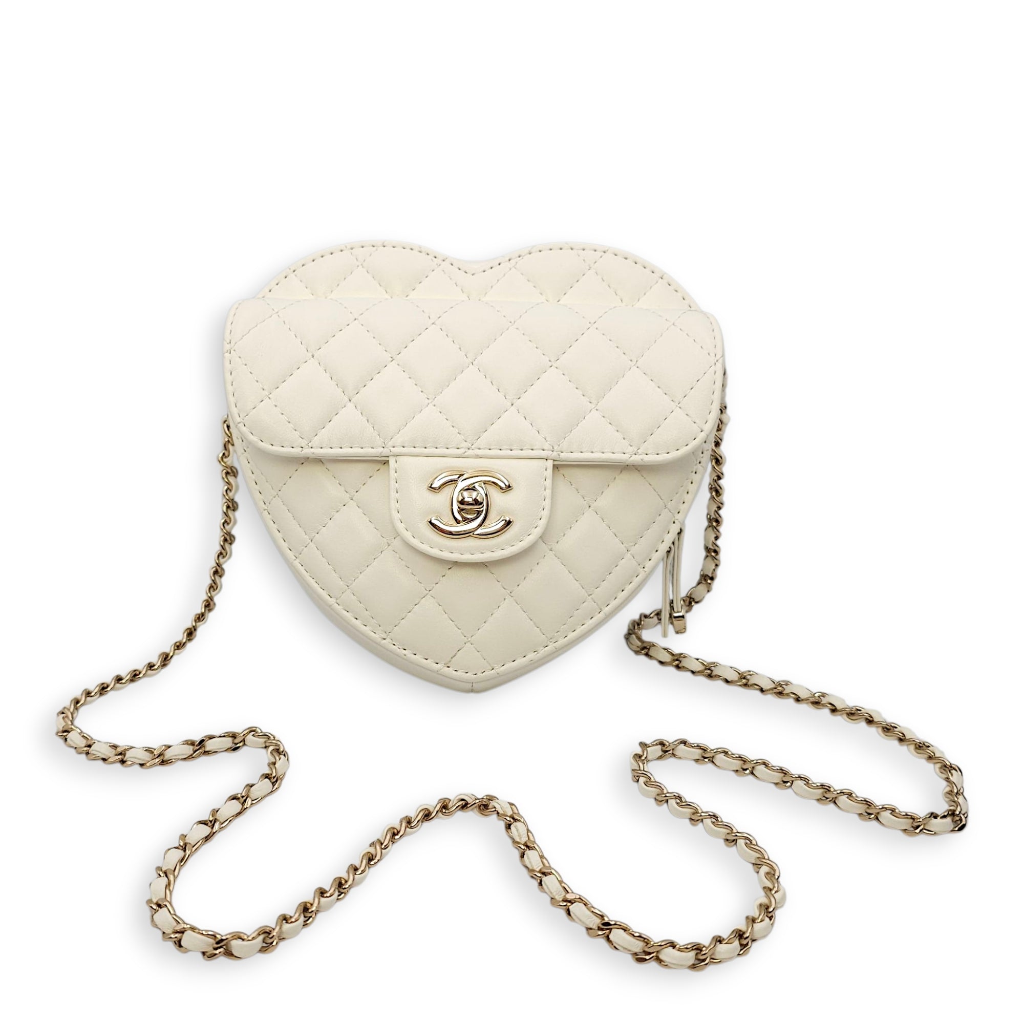 Be the first to review “CC White Heart Bag in Lambskin, Champagne hardware”