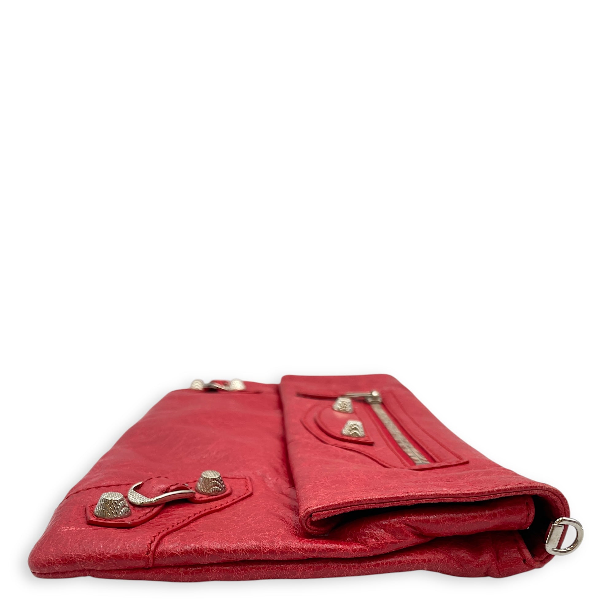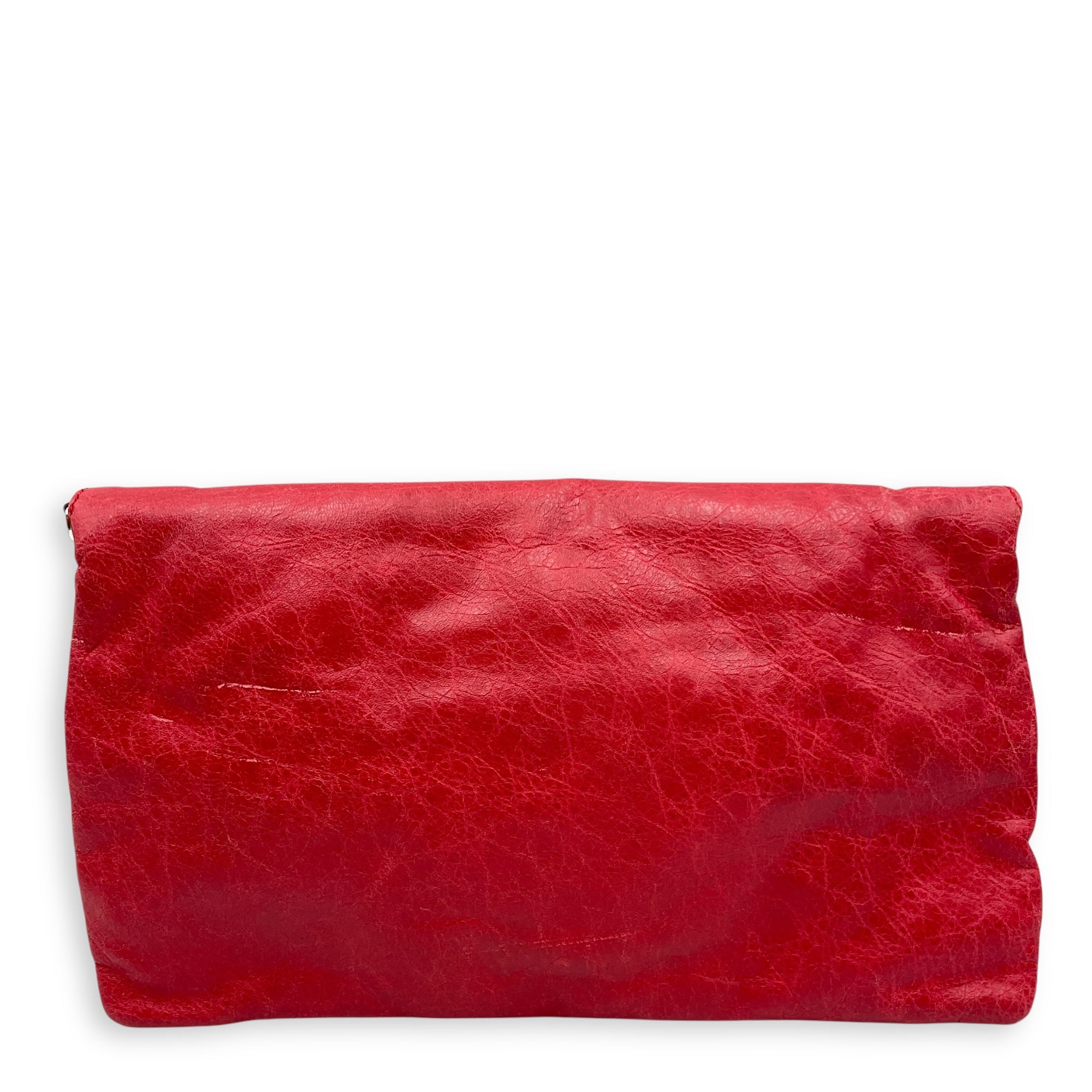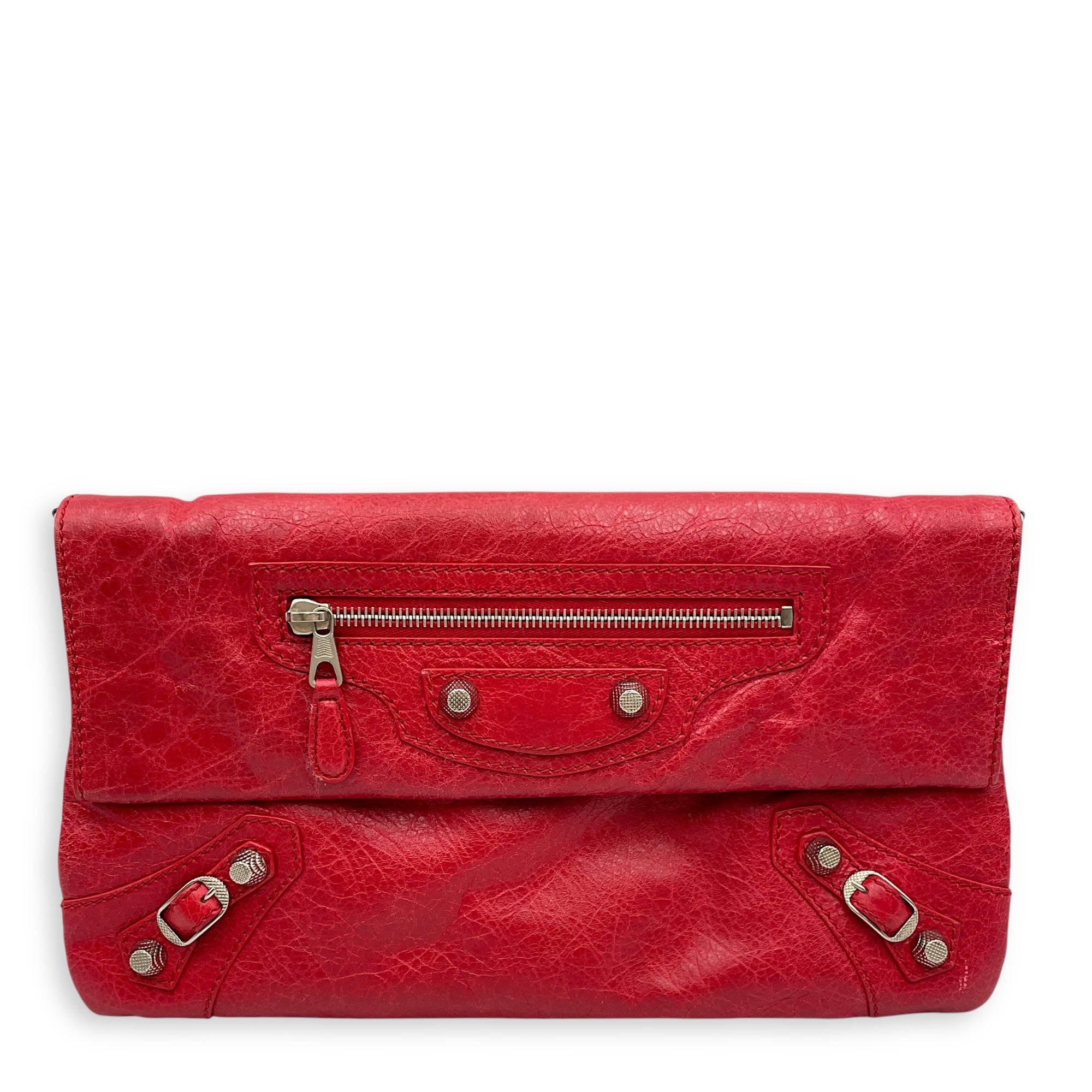 City Pouch Red Crossbody Bag in Distressed Leather, Silver hardware